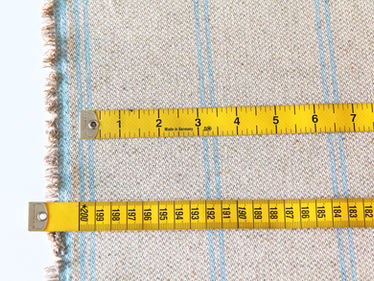 Lovely durable hemp blend fabric with stripes for upholstery. The combination of the natural undyed hemp and cotton fibers provides durability and a natural aesthetic, while the light blue stripes add a touch of color and modern flair. This fabric would complement the clean lines, neutral color palettes, it can enhance the cozy and rustic feel of a modern farmhouse, add a minimalist and airy vibe to a Scandinavian space, or bring a relaxed and coastal element to a Mediterranean-inspired room.